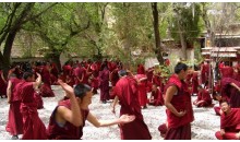 哲蚌寺,坐落在拉薩市西郊約十公里的根培烏孜山南坡的坳里,是黃教創(chuàng)始人宗喀巴的弟子降央曲吉-扎西班丹于公元1416年創(chuàng)建。解放前該寺僧眾超過一萬人,擁有141個(gè)莊園與540多個(gè)牧場,是藏傳佛教最大的寺廟。