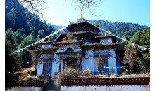布久喇嘛林寺依山傍水,佛殿庭院掩映綠蔭之中,院內(nèi)藏犬成群。整個(gè)寺院形狀內(nèi)呈正四角,外底層屋檐共有二十角,第二到第三層屋檐為八角,佛殿高20余米,內(nèi)徑10余米,上覆金頂,呈塔形,四面墻體分以白蘭紅綠四色涂之,非常漂亮。喇嘛林寺有著名的蓮花生大師踐石遺跡,寺內(nèi)精美的壁畫也堪稱藏東一絕。布久喇嘛林寺屬紅教,是林芝地區(qū)最大最重要的藏傳佛教場所。