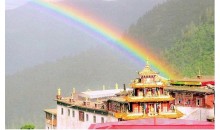 嘎東寺位于日喀則白朗縣年楚河以北16公里嘎東鎮(zhèn)境內(nèi)。嘎東寺歷經(jīng)寧瑪派、噶舉派、薩迦派,到十七世紀(jì)中葉開始盛行格魯派。寺中珍藏有舉世罕見的寶物,即該寺第四任堪布桑布?xì)J布的兩條徑骨和空行母絲薩曲珍的頭顱。在桑布?xì)J布右徑骨上端的骨縫四周天然生成著微小的釋迦牟尼、觀音菩薩、無量光佛、護(hù)法神、度母五尊佛像;左脛上端天然生成著微小的釋迦牟尼佛像和4個(gè)白色舍利;在度母化身空行母絲薩曲珍的頭顱上天然生成著三個(gè)藏文字母和度母像。原嘎東寺已被毀壞,1985年在原址上重新修建了嘎東寺。