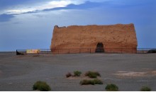 晉(317-420年)壁畫墓位于墓群南端的陶家莊。由于是70年代才開始發(fā)掘,所以并不被外界所熟悉。壁畫墓距地表12米,封土殘高2米,前有長33米,寬1.42米的斜坡墓道直通墓室,墓室全用平磚疊砌,分前后兩室,前室四壁和頂部布滿彩色畫面,后室只在后壁施畫。由于這里氣候干燥,壁畫保存基本完好,此墓的發(fā)現,是河西走廊第一次發(fā)現東晉壁畫墓。